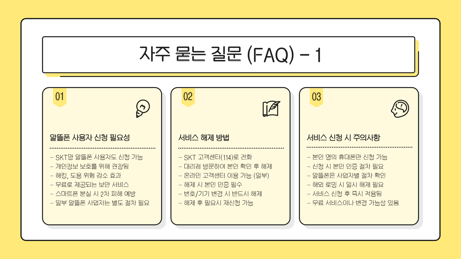 A. SKT 망 알뜰폰이라면 가능 여부를 확인 후, 가능하면 신청하는 것이 안전합니다. - Q. 해제는 어떻게 하나요?